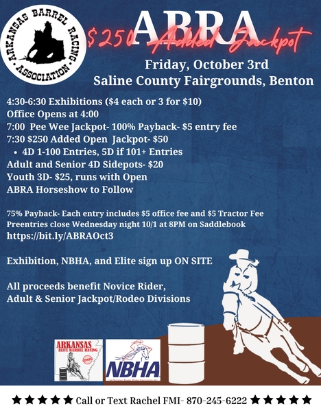 All proceeds benefit Novice Rider, Adult Jackpot/Rodeo and Senior Jackpot/Rodeo Divisions See less
